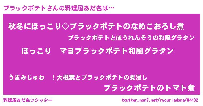 | 意味不明あだ名 | 『住所不定無職ブラックポテト(81歳)』 |