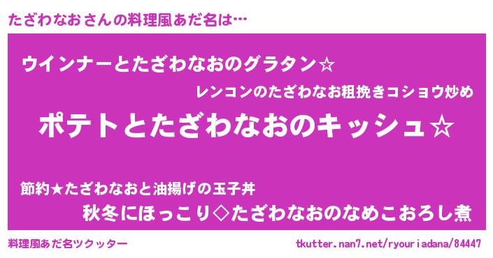 | 女子向けラノベタイトル風あだ名 | 『たざわなおの卵を拾いまして』 |
