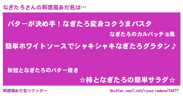 | 女子向けラノベタイトル風あだ名 | 『なぎたろ様がみてる』『なぎたろ恋絵巻』 |