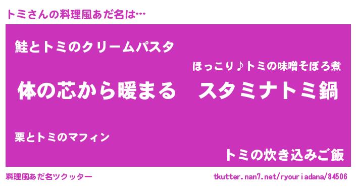 | 女子向けラノベタイトル風あだ名 | 『トミの雑貨屋さん』『死神トミの再婚』 |
