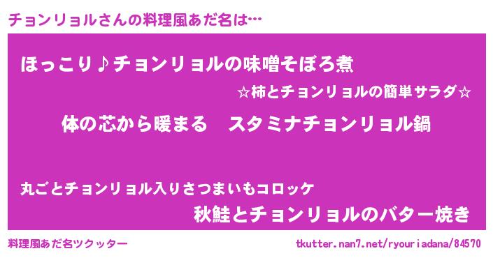 | 女子向けラノベタイトル風あだ名 | 『チョンリョルの雑貨屋さん』 |