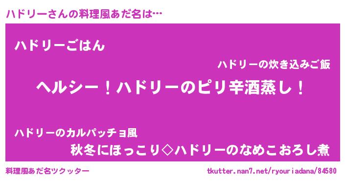 | 男性向けラノベタイトル風あだ名 | 『Re:ハドリーから始める異世界生活』 |