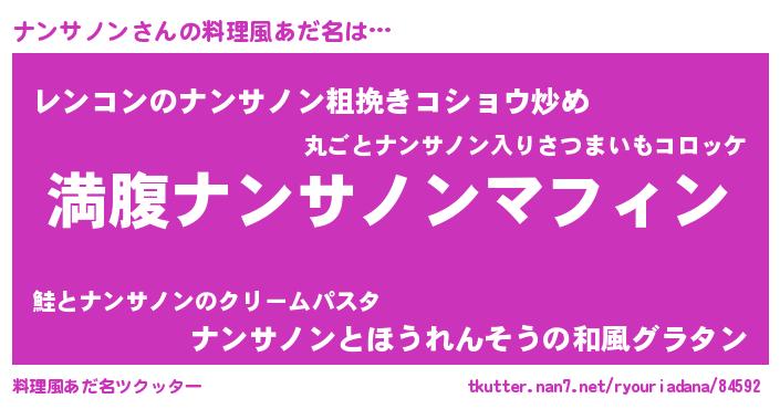 | 男性向けラノベタイトル風あだ名 | 『ナンサノンという概念が存在しない退屈な世界 』 |