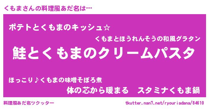 | 自動車の名前っぽいあだ名 | 『クンR』『クルトモパン』『ククア』 |