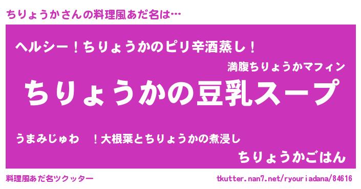 | 胡散臭い通販商品みたいなあだ名 | 『信頼と実績のサプリメント…その名も「ちりょうか」』 |