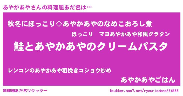 | ヒーロー風カッコイイあだ名 | 『慈愛の使者あやかあや』『仮面アヤダー』 |