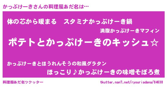 | 女子向けラノベタイトル風あだ名 | 『かっぷけーきの卵を拾いまして』 |