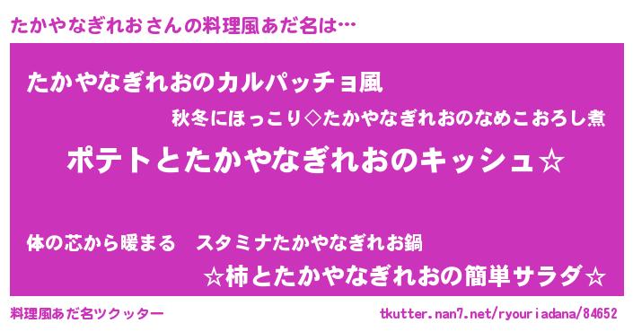 | ヘコむあだ名 | 『たかを』『つくし』『たかもー』 |