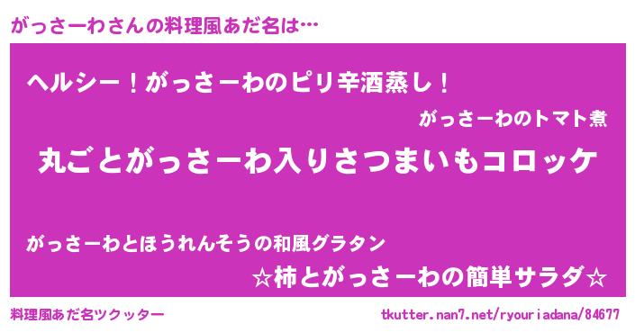 | 男性向けラノベタイトル風あだ名 | 『魔弾の王とがっさーわ』 |