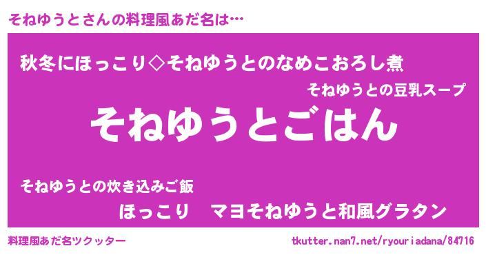 | 意味不明あだ名 | 『なめこ科そねゆうと属』 |