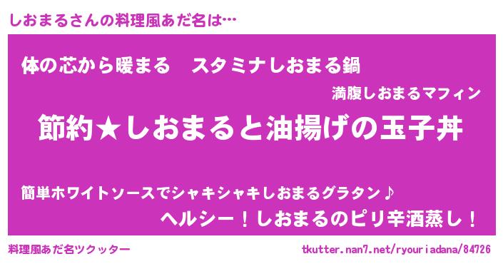 | ヘコむあだ名 | 『しおもー』『牛乳』『しおまる(笑)』 |