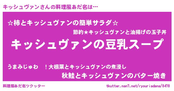 | 男性向けラノベタイトル風あだ名 | 『ダンジョンにキッシュヴァンを求めるのは間違っているだろうか』 |