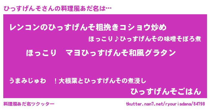 | 意味不明あだ名 | 『住所不定無職ひっすげんそ(98歳)』 |