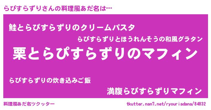 | 意味不明あだ名 | 『眠気覚ましガムらぴすらずり味』 |