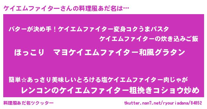 | ヘコむあだ名 | 『ケイエムファイター(震え声)』『酢こんぶ』 |