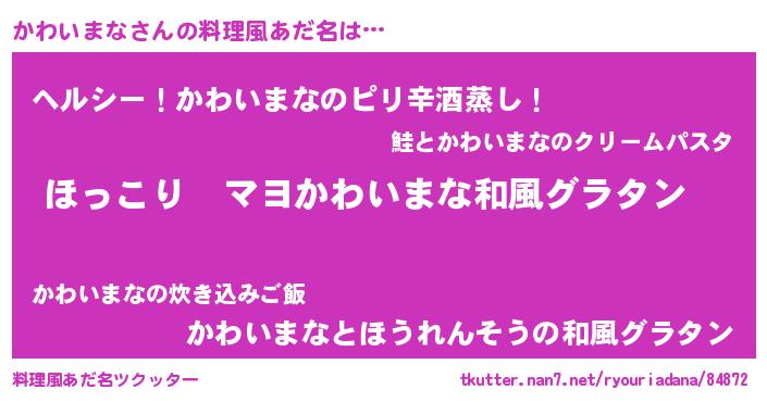 | 意味不明あだ名 | 『住所不定無職かわいまな(56歳)』 |