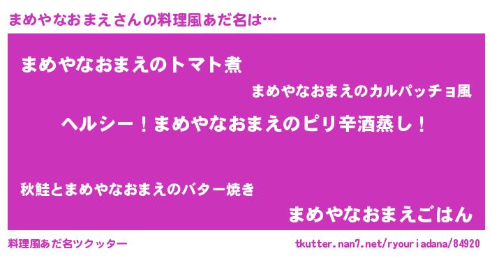 | 意味不明あだ名 | 『自称まめやなおまえ』 |