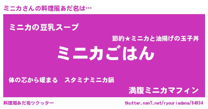 | 男性向けラノベタイトル風あだ名 | 『ミニカスレイヤー』『ミニカの憂鬱』 |