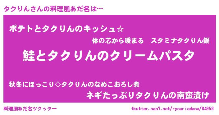 | ヒーロー風カッコイイあだ名 | 『慈愛の使者タクりん』『炎刃騎士タク』 |