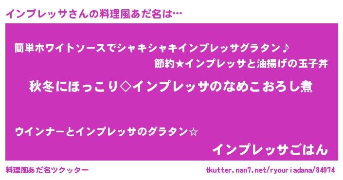 | 欧米人風あだ名 | 『アンジェラ・インプレッサ』 |