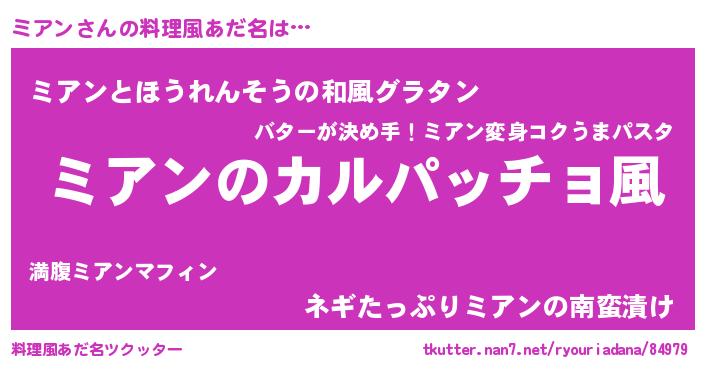 | ヘコむあだ名 | 『ミアもー』『ミアン(苦笑)』 |