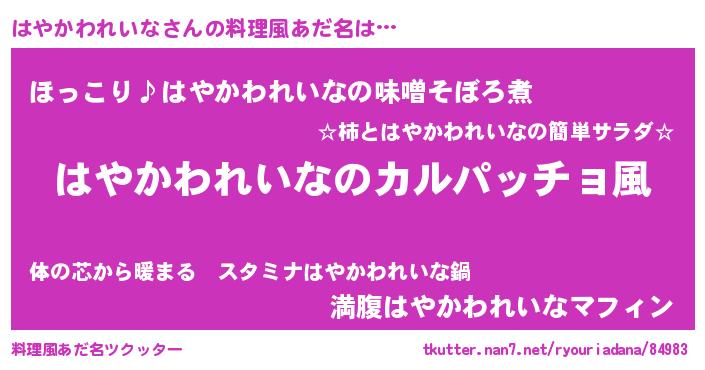 | 意味不明あだ名 | 『住所不定無職はやかわれいな(89歳)』 |