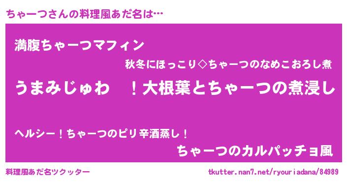 | 女子向けラノベタイトル風あだ名 | 『ちゃーつの婚約者』『闇のちゃーつ』 |