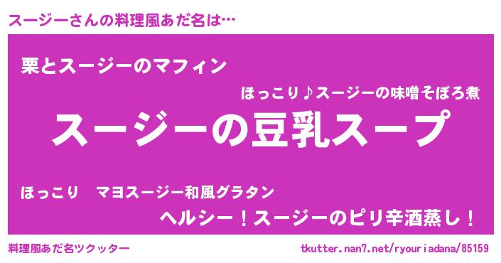 | 胡散臭い通販商品みたいなあだ名 | 『信頼と実績のサプリメント…その名も「スージー」』 |