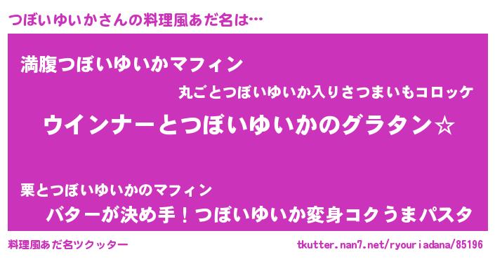 | ヘコむあだ名 | 『なまこ酢』『つぼいゆいか(遠い目)』 |