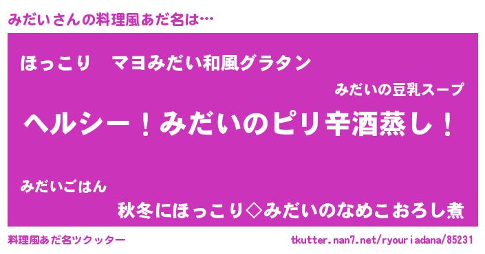 | 意味不明あだ名 | 『自称みだい』『住所不定無職みだい(4歳)』 |