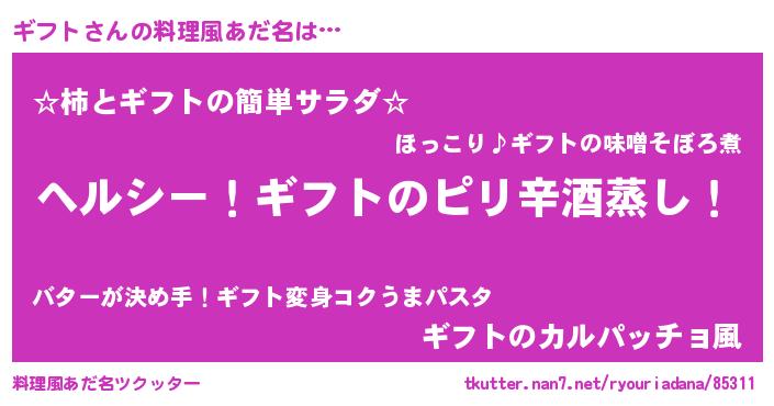 | 女子向けラノベタイトル風あだ名 | 『闇のギフト』『ギフト恋絵巻』 |