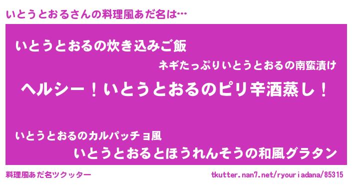| 胡散臭い通販商品みたいなあだ名 | 『テレビで話題の高麗人参…その名も「いとうとおる」』 |