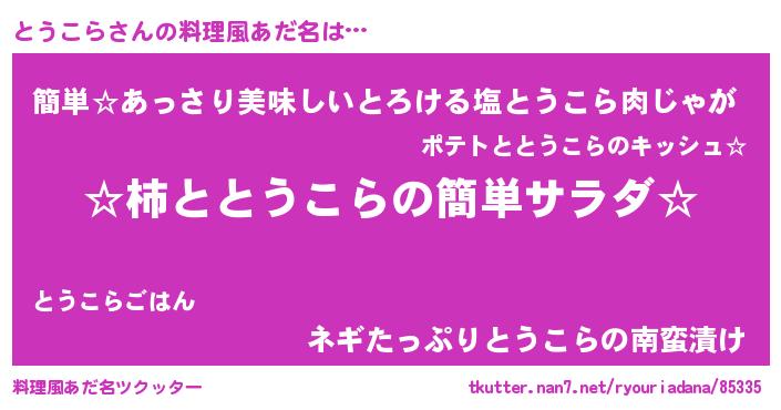 | 意味不明あだ名 | 『永久保存とうこら』『ペロリンとうこら』 |