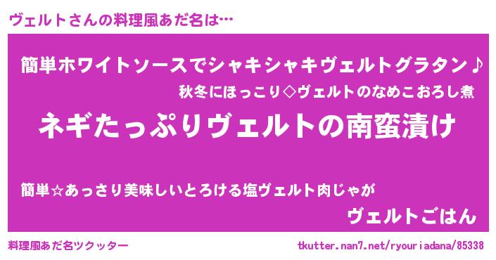 | 意味不明あだ名 | 『ペロリンヴェルト』『永久保存ヴェルト』 |