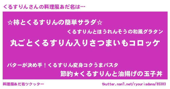 | 男性向けラノベタイトル風あだ名 | 『この素晴らしい世界にくるすりんを!』 |
