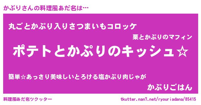 | 女子向けラノベタイトル風あだ名 | 『かぷりの卵を拾いまして』 |