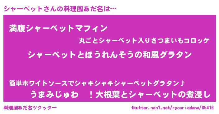 | 女子向けラノベタイトル風あだ名 | 『シャーベットの玉の輿計画!』 |