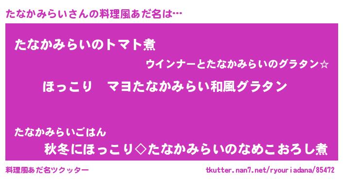 | 意味不明あだ名 | 『住所不定無職たなかみらい(89歳)』 |