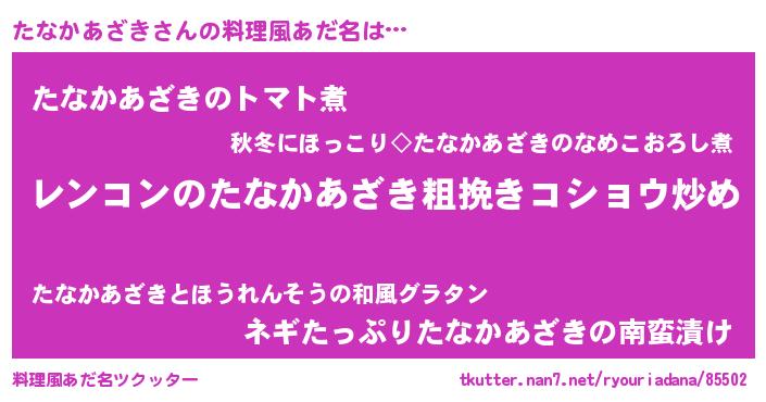 | 意味不明あだ名 | 『自称たなかあざき』 |