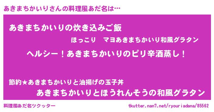 | 男性向けラノベタイトル風あだ名 | 『Re:あきまちかいりから始める異世界生活』 |