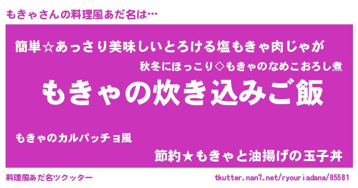 | ヘコむあだ名 | 『もきゃ(笑)』『もきっふぃ~』 |