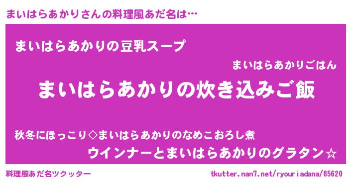 | 男性向けラノベタイトル風あだ名 | 『うちのまいはらあかりが世界を掌握している!』 |