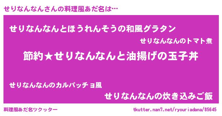 | 男性向けラノベタイトル風あだ名 | 『せりなんなんの憂鬱』 |
