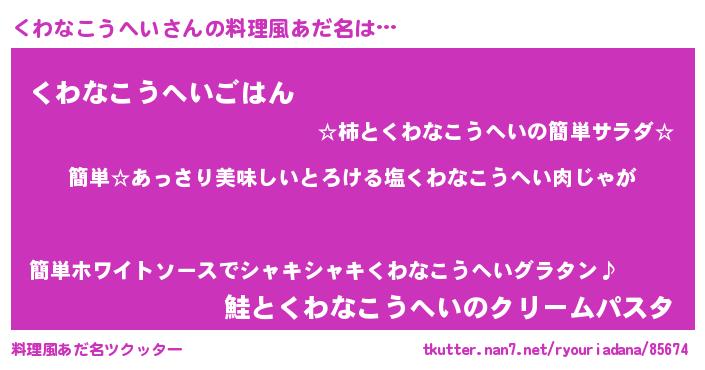 | 意味不明あだ名 | 『永久保存くわなこうへい』 |
