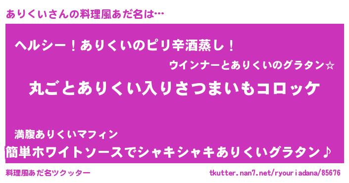 | 意味不明あだ名 | 『住所不定無職ありくい(68歳)』 |