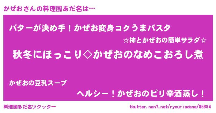 | 女子向けラノベタイトル風あだ名 | 『横柄かぜおと宰相陛下』『かぜお恋絵巻』 |