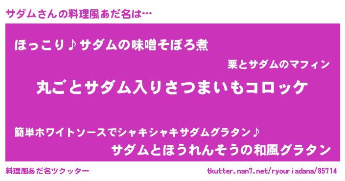 | 男性向けラノベタイトル風あだ名 | 『この素晴らしい世界にサダムを!』 |