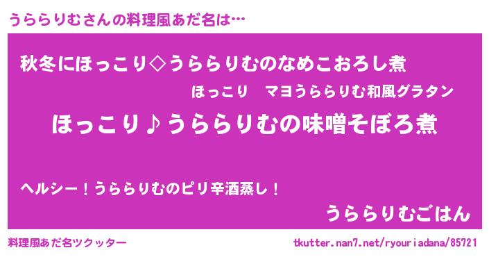 | 意味不明あだ名 | 『ペロリンうららりむ』『自称うららりむ』 |