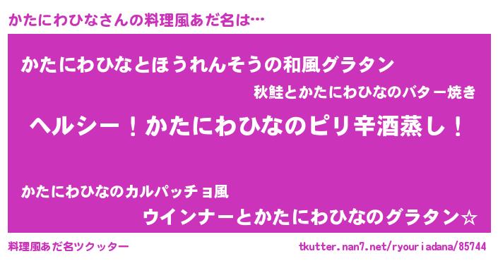 | 女子向けラノベタイトル風あだ名 | 『かたにわひなストレイドッグス』 |