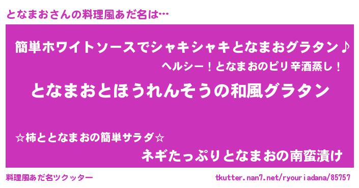 | 男性向けラノベタイトル風あだ名 | 『転生したらとなまおだった件』 |